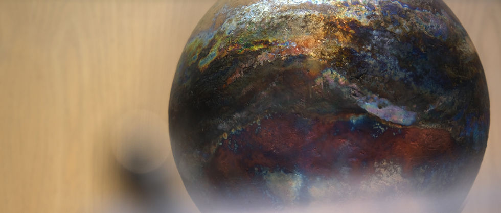 結合金屬氧化物釉料與傳統「蕎麥殼」燒製技術,創造出驚人的色彩與質感,展現出精湛的實驗精神。