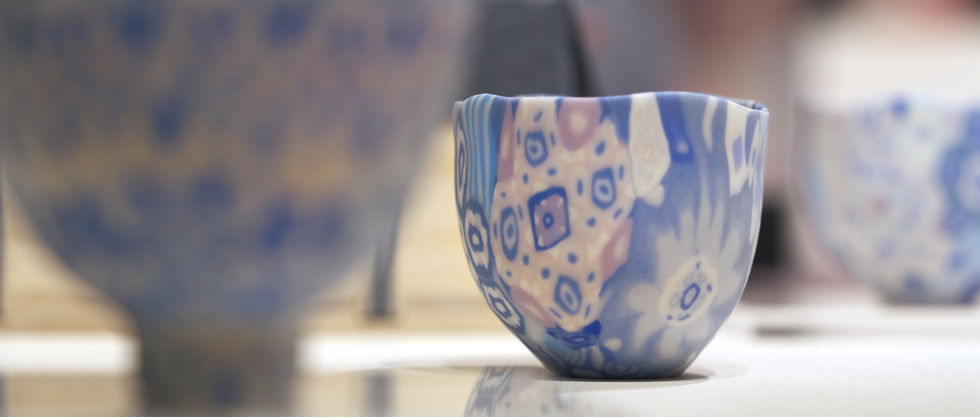 「練上」是一種獨特的陶藝技術,運用不同顏色的陶土組合出美麗的圖案,並在器物的正反兩面展現相同的設計。每一塊陶泥在拉伸、切割或連接的過程中,微小的扭曲為每個圖案增添了獨特的變化。陶藝家們透過重疊的圖案和時間的流逝,創造出精緻的練上陶瓷,讓每一抹泥土都充滿詩意與美感。